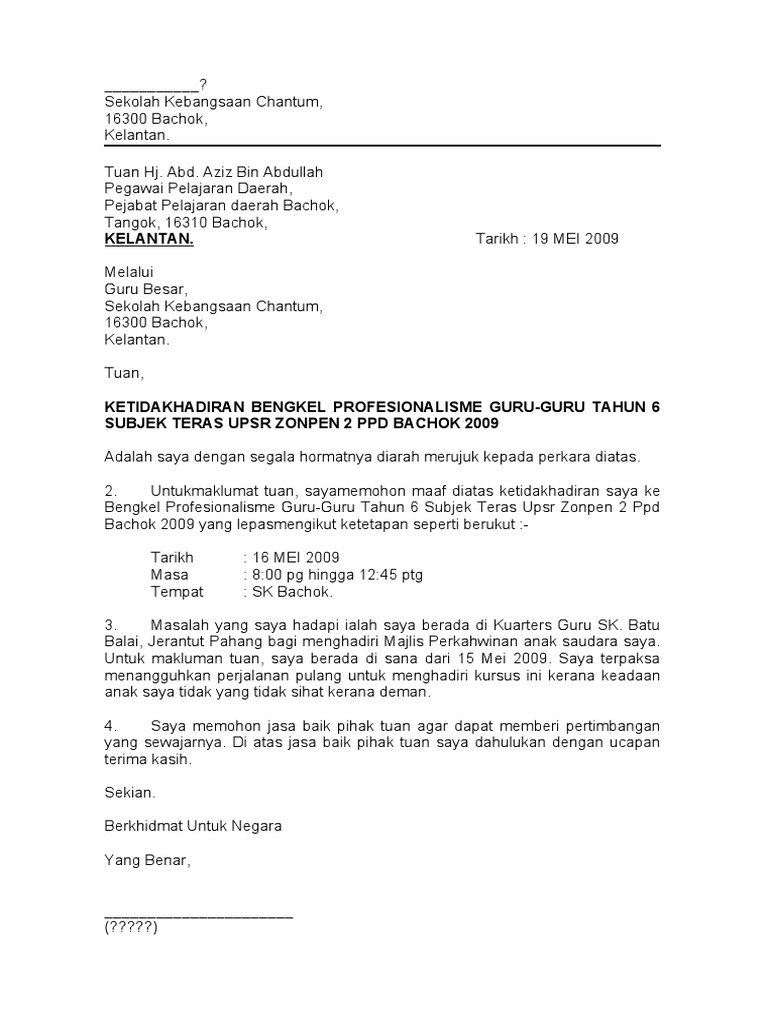 Biasanya, kursus berlangsung beberapa hari, dan bukannya sehari. By muhd_nazmi_40 in types > government & politics and surat kelewatan 3. Harap menyerahkan laporan sebagai pertanggung jawaban secara tertulis setelah mengikuti kegiatan. Yuk, pahami dan praktikkan agar segala transaksi berjalan lancar! Sehubungan dengan itu, saya ingin memberi sebab bahawa pada tarikhtarikh kelewatan tersebut seperti dilampiran, saya telah mengalami.