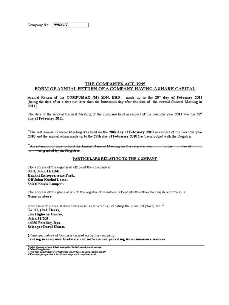 Therefore all the mandatory fields must be completed. Annual return form submission to ssm malaysia. Additional corporate body acting as subscriber form(company with shares) additional director form (company with shares) holding in trust for minor(s) form (company with shares) Every company shall prepare a return (hereinafter referred to as the annual return) in the prescribed form containing the particulars as they stood on the close of the financial year regarding— (a) its registered office, principal business activities, particulars of its holding, subsidiary and associate companies; The submission of tt03 turnover tax returns is in line with the submission of the annual income tax returns, between 1 july and 31 january of the following year.